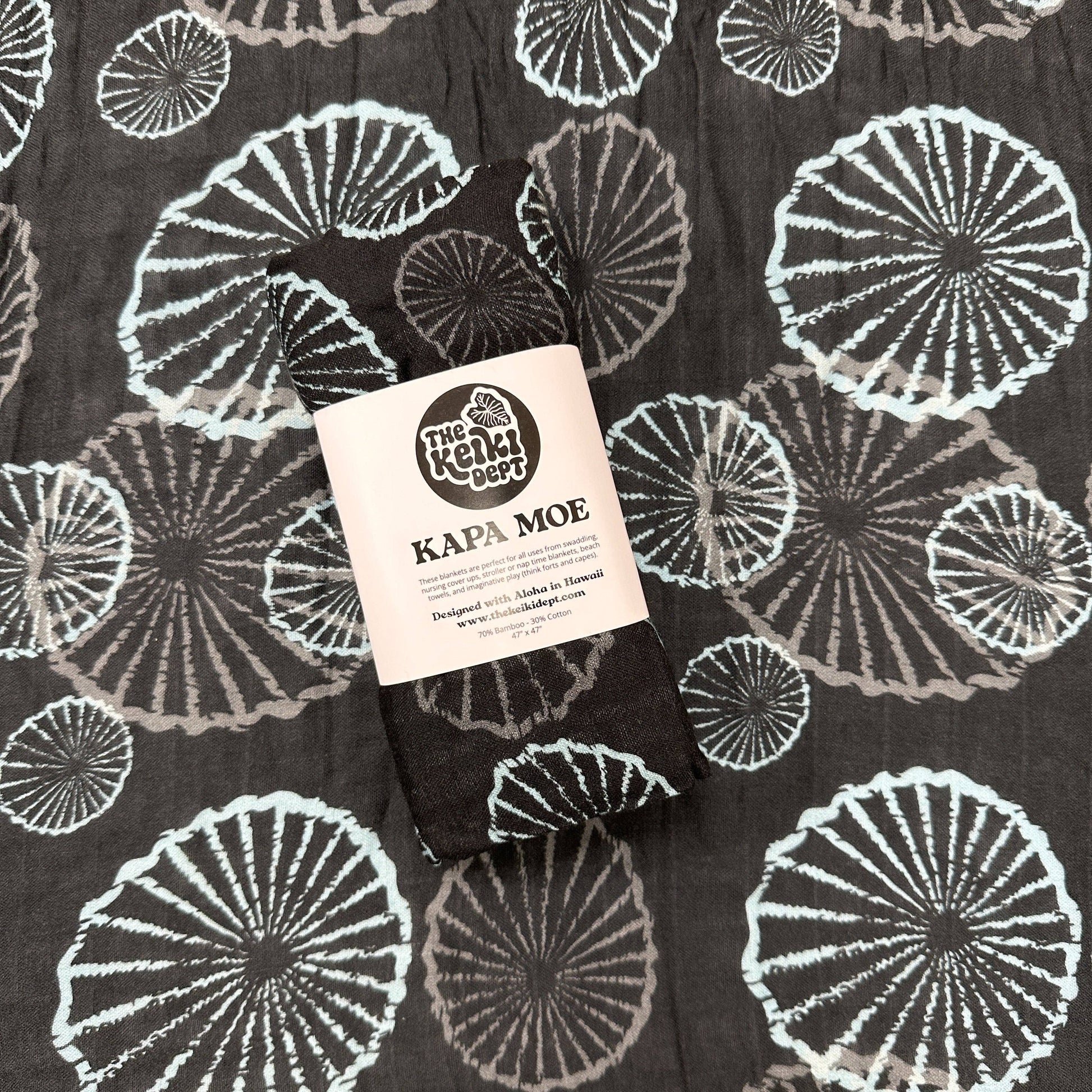 Inspired both native Hawaiian and local Hawaii culture, our bamboo muslin kapa moe are one of the most popular items in our shop! In Hawaiian, Kapa Moe means blanket. These oversized swaddle blankets are designed to grow with your keiki and even be useful to an adult who might just fall in love with the design!