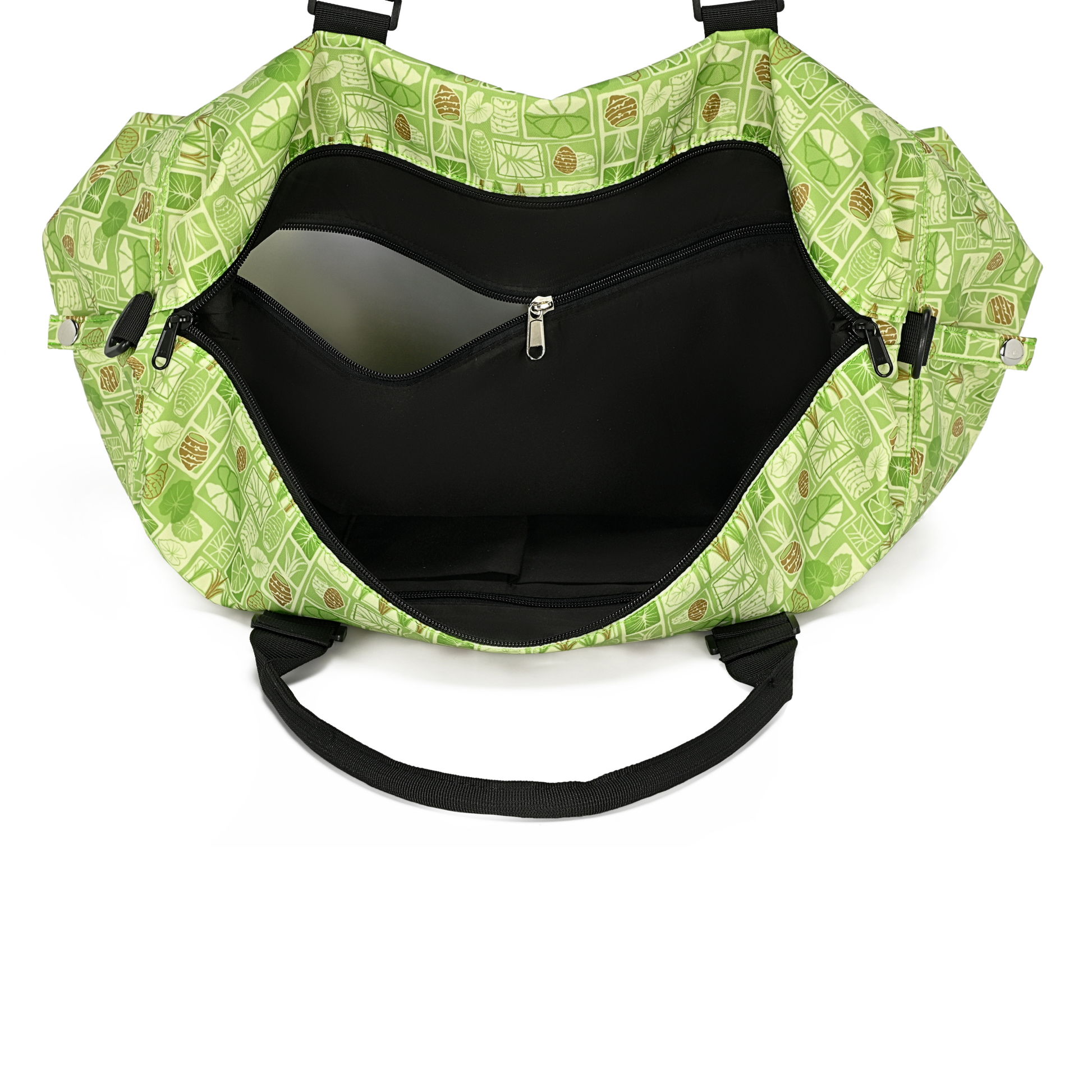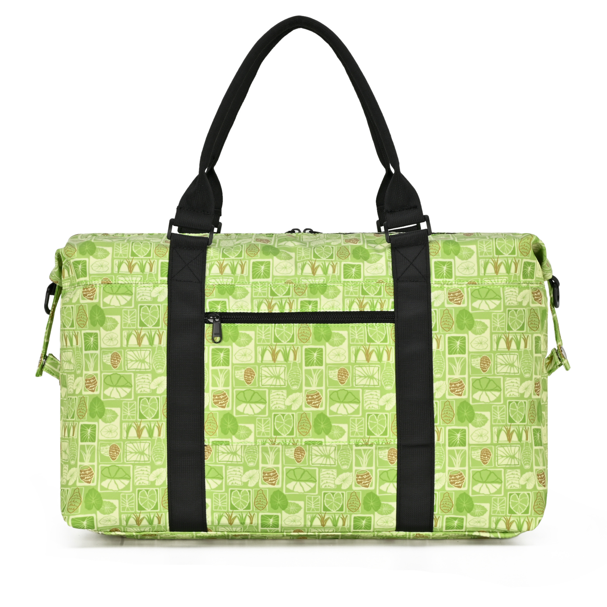 Holoholo (travel/wander) with the blessing of kalo in our spacious travel tote. The kalo plant design reminds us that no matter where we roam, we carry our roots and 'ohana connections with us.